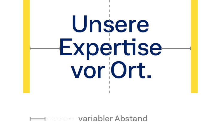 Innerhalb dieser Abstände darf die Schriftgröße flexibel angepasst werden. Es ist nur darauf zu achten, dass die Schriftgröße mind. 2 Balken Höhe hat.